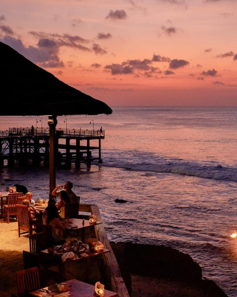Locca Sea House is a lively spot in Jimbaran set high along the coast, blending food, drinks, music and art in one open and social space. The mood shifts gently