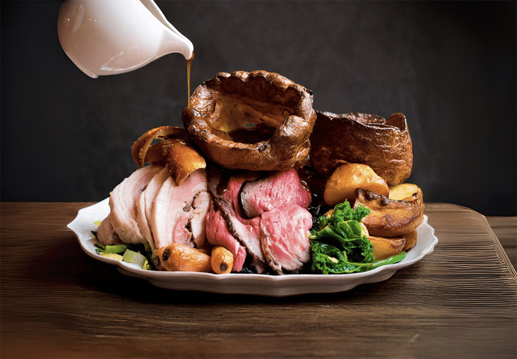Jemme is not your typical Sunday spot. Equal parts jewellery boutique and boudoir-style restaurant, it’s a glamorous escape with chandeliers overhead and cocktails flowing. The roast here feels ceremonial. Choose your centrepiece — chicken, pork, beef, lamb, or a nut roast — then pick four sides. Expect golden roast potatoes, seasonal vegetables, fluffy Yorkshire pudding, and gravy rich enough to demand seconds.