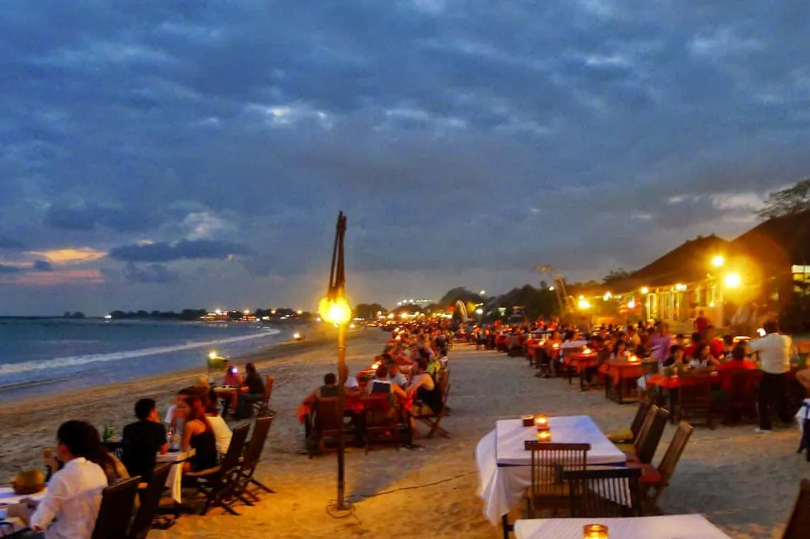 As the day unfolds, Jimbaran Beach becomes a place to linger. The shallow water makes it easy to wade in and cool off, and the open shoreline gives plenty of space to spread out without feeling crowded. Toward evening, the beach takes on a warm glow as the sun dips low, setting the scene for one of Jimbaran’s most loved rituals.
