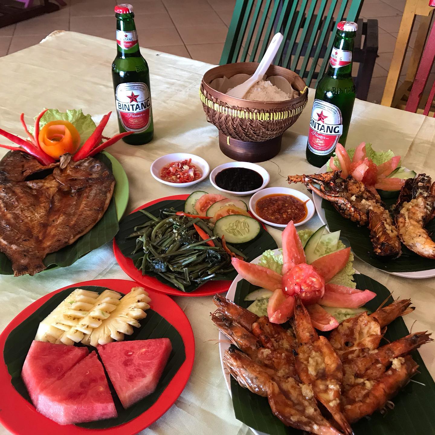 The process is just like other Jimbaran seafood spots — pick your fresh seafood, choose your sides, and enjoy the meal grilled over coconut husk fires. The flavours are simple but bold, with each dish bringing out the essence of Bali’s coastal food culture.