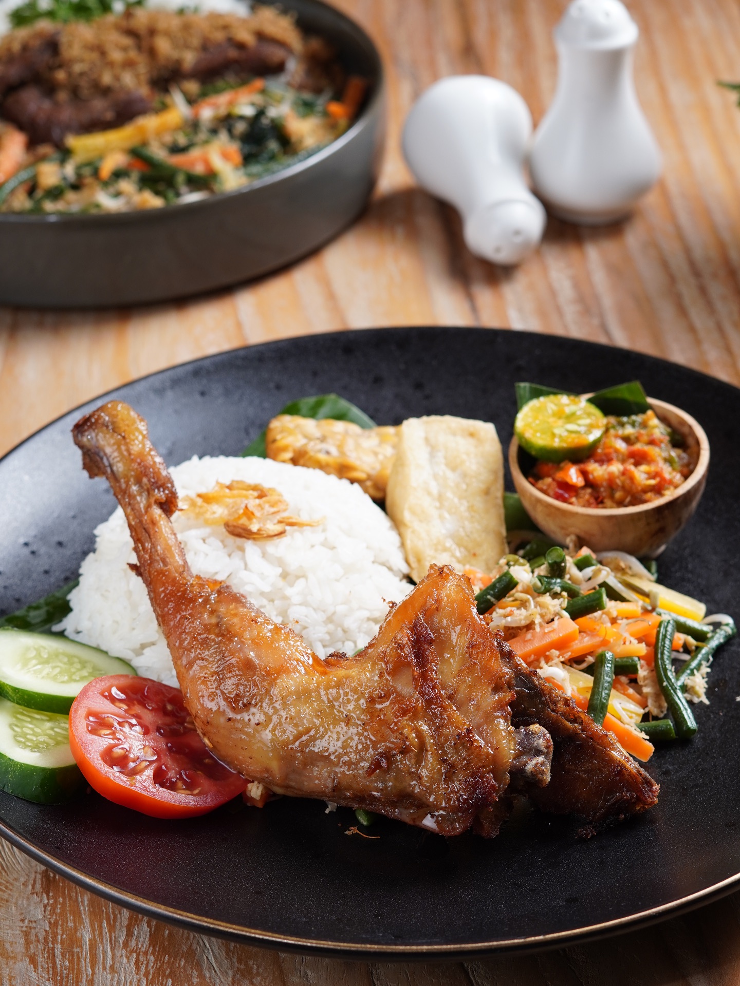 The nasi pecel daging sapi is a great place to start, bringing together beef brisket, vegetables, tempe, tofu, egg and peanut sauce in one satisfying plate.