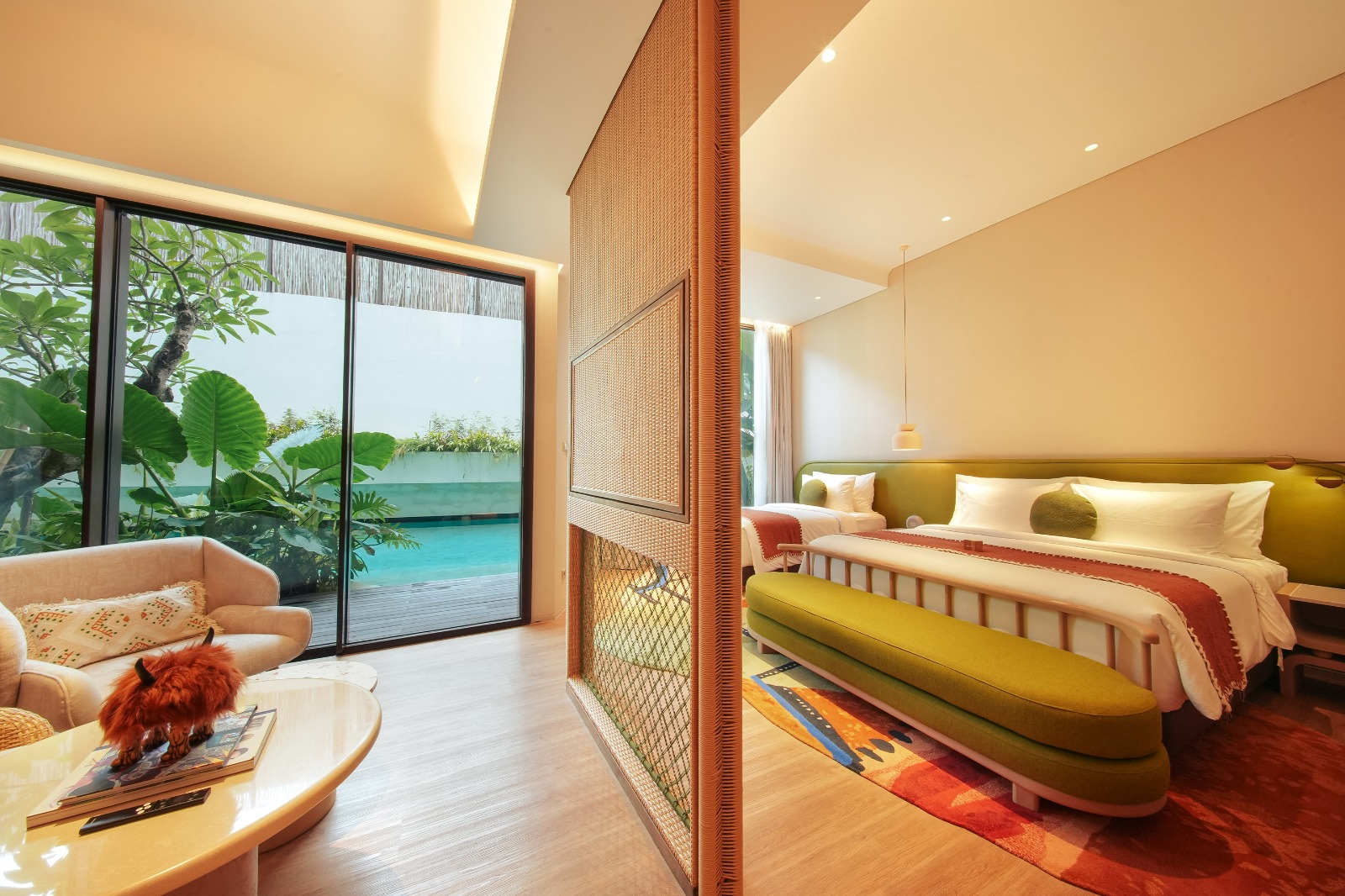 With 157 thoughtfully designed rooms, including lagoon-access studios and rooftop suites, Noema blends contemporary design with Balinese tropical ambiance. The architecture draws inspiration from traditional Indonesian houses, reimagined in a chic, modern way to maximize garden and pool views from many rooms.