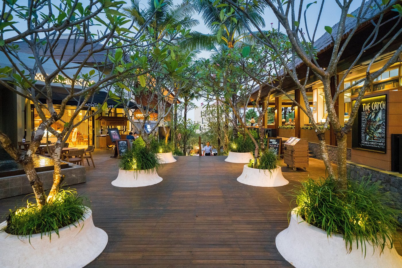 By evening, Samasta turns into an easy dinner spot with warm lights, casual restaurants, and a laid back energy that suits nights when you want something simple. It is especially convenient for guests staying nearby, with a mix of cafes, shops, small markets, and occasional performances that give you enough variety without feeling busy.