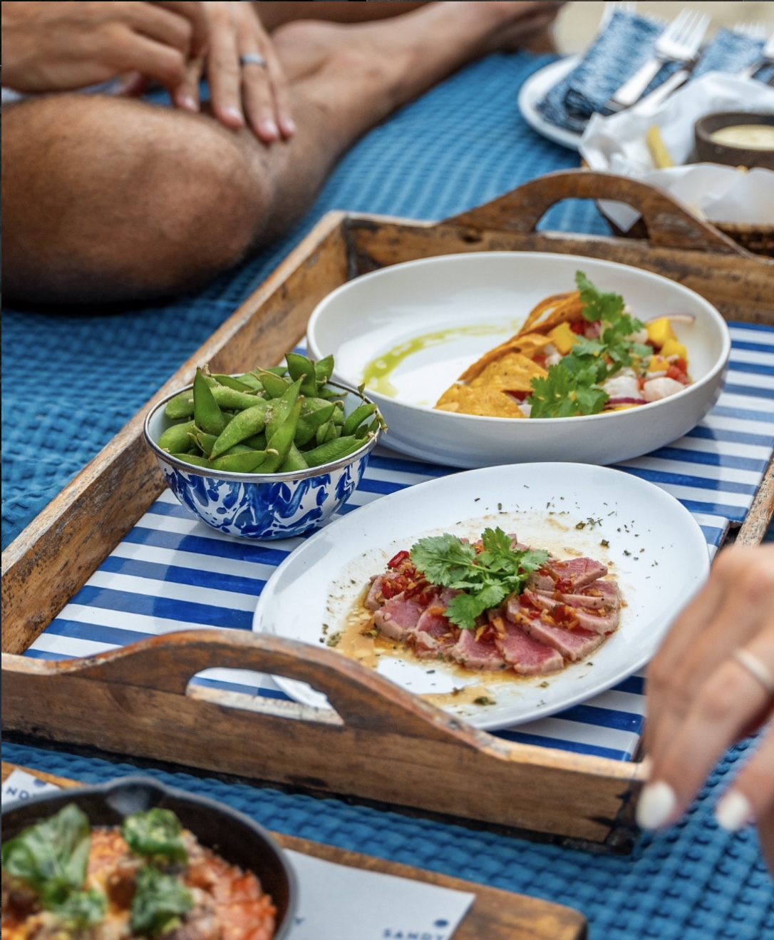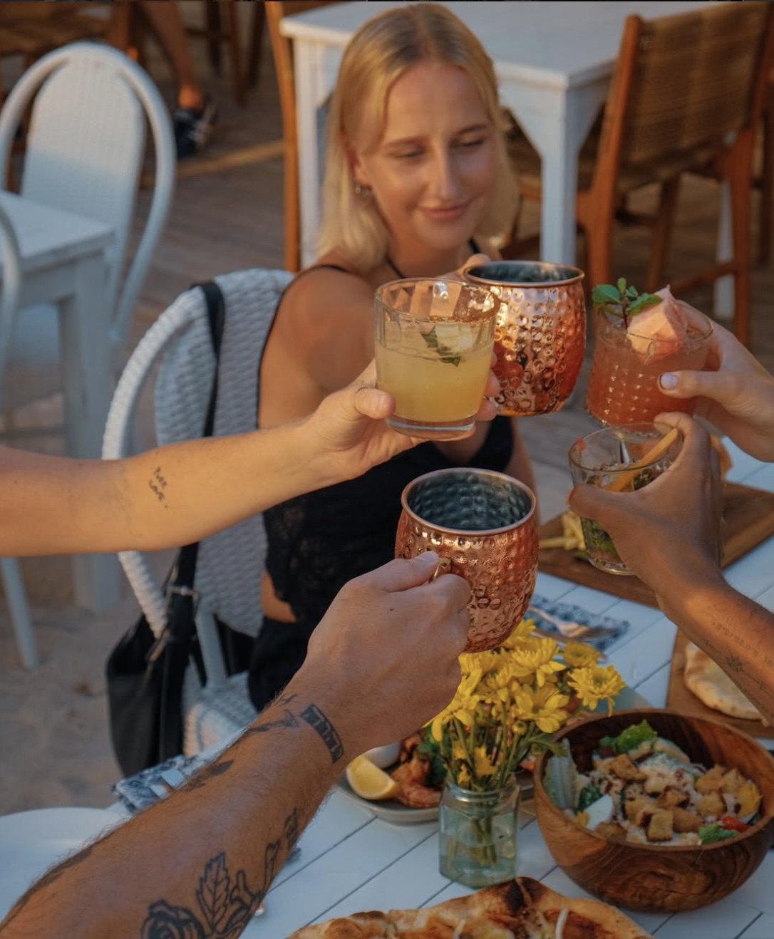 The menu is full of crowd-pleasers — from fresh seafood and vibrant salads to pizzas and tropical cocktails. Pair it with a crisp white wine or a mojito by the pool, and you’re set for an effortless afternoon. It’s the kind of place where time slows down, and the view becomes part of the experience — especially as the sun starts to dip and the bay lights up in gold.