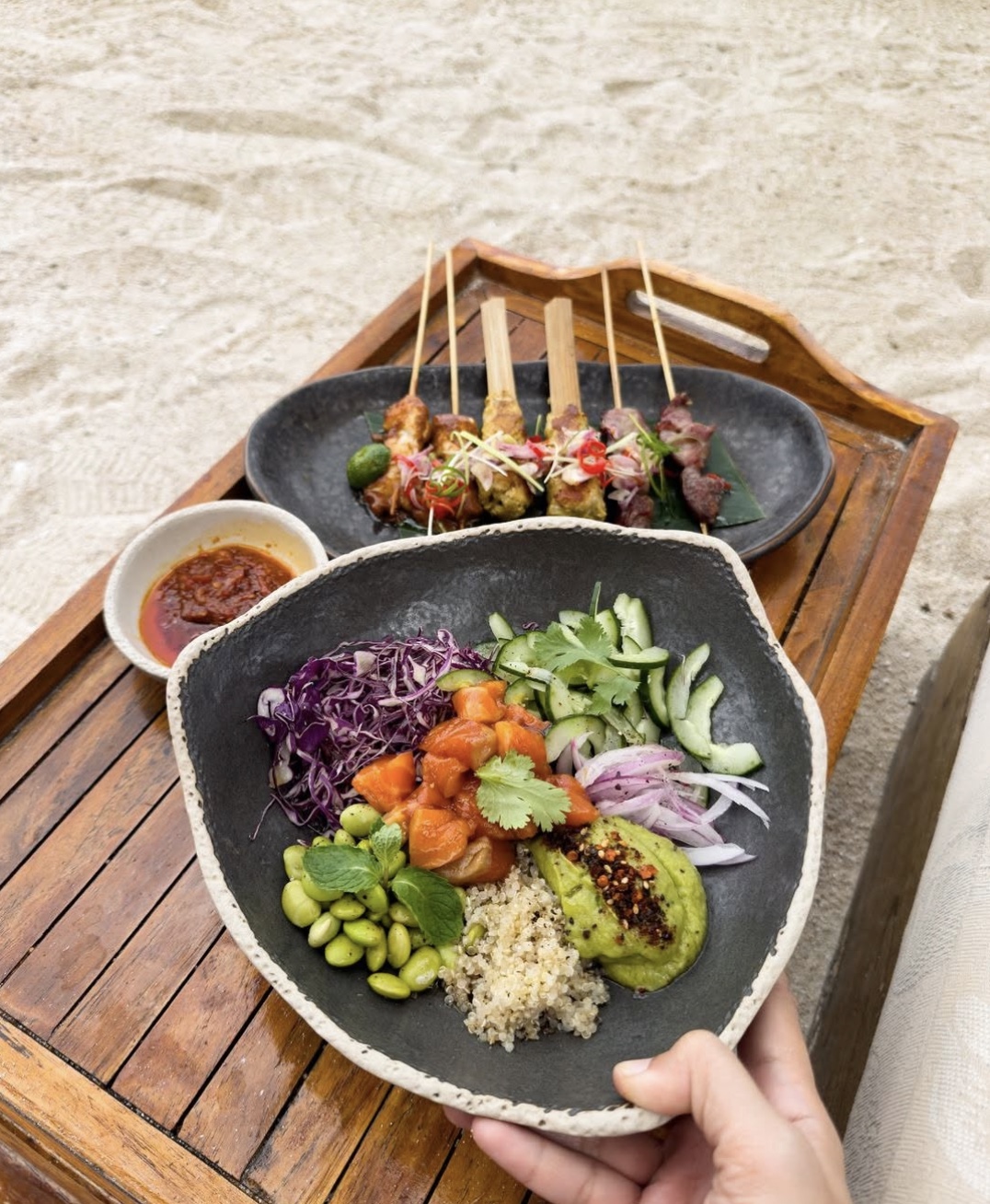 Spread across two levels, the open-air restaurant offers sweeping views of the ocean, while the infinity pool and plush loungers invite you to slow down and soak it all in. Whether you’re sipping cocktails under the sun or settling in for a sunset dinner, Suku pairs relaxed island living with a refined touch.