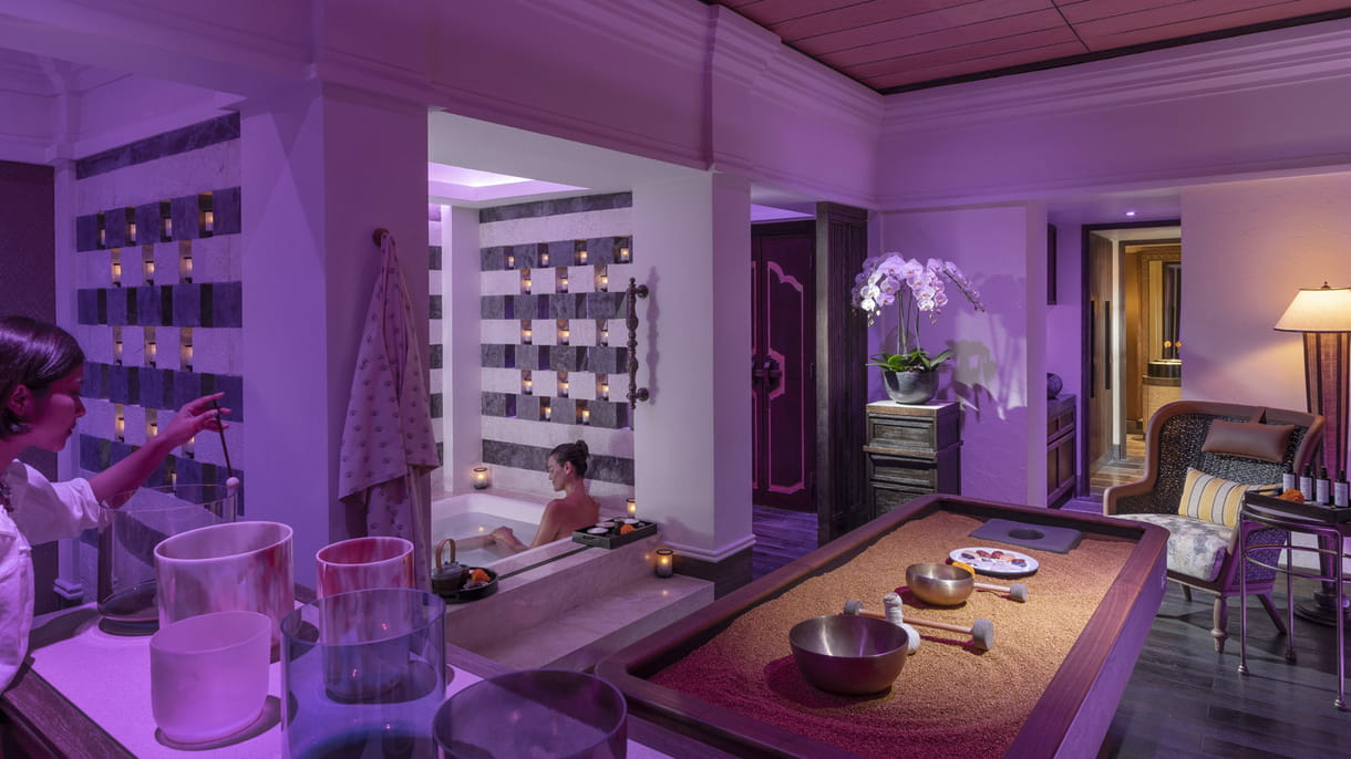 Alongside soothing treatments, the spa features a wellness area with warm pools and quiet zones where you can truly reset. A signature treatment here is the Crystal Healing Massage, using warm crystal spheres for a deeply rejuvenating experience that’s both relaxing and emotionally restoring.