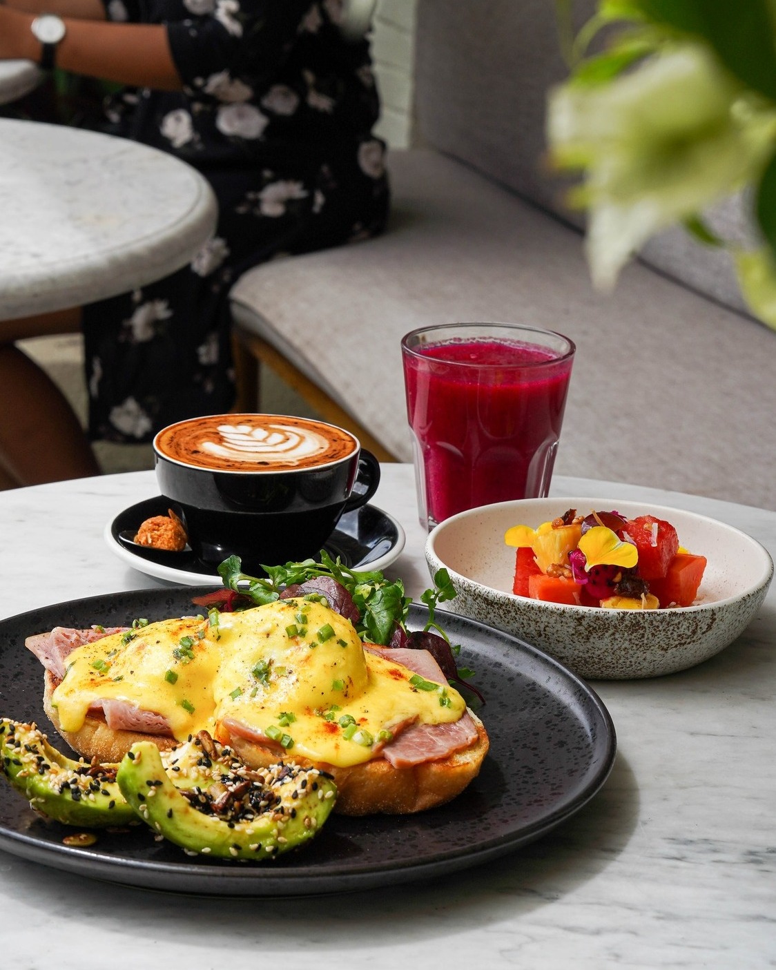 One of their popular sets pairs eggs benedict with chia pudding, coffee and juice, making it an easy choice when you want a bit of everything. In the evening, happy hour brings a lively feel with two for one cocktails from 4 to 7 pm and again from 9 pm.